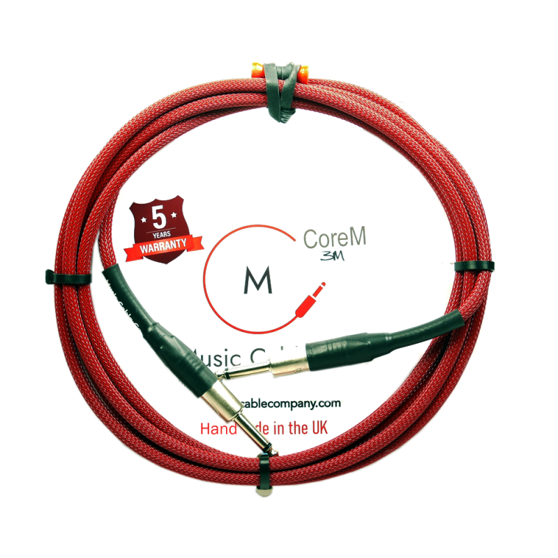 For the CoreM range we have chosen a very high specification oxygen-free copper (OFC) cable, comprising of a single 0.5mm2 conductor and copper braided screen (100% Shielding) and secondary insulator. The cable joints are hand soldered and where required, heat shrink sleeving is applied for strain relief and additional bond strength. The outer is a strong flex weave material, available in a range of colours to suit your personal taste and stage style.